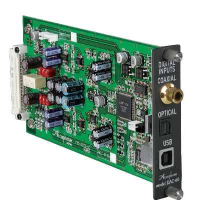 The DAC-60 is a digital input board that can input digital signals directly into amplifier units when installed in Accuphase preamplifiers and integrated amplifiers. Three input types are provided (USB, OPTICAL, COAXIAL) for connection to a broad range of digital devices.Read More