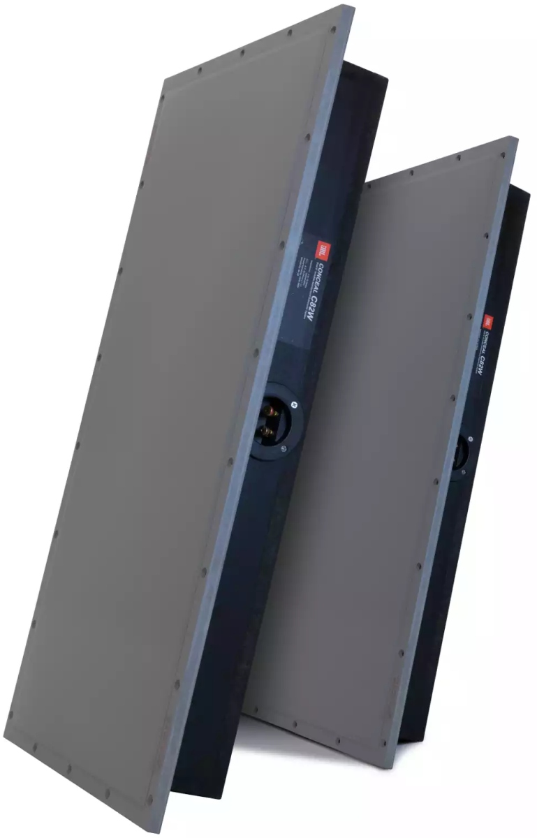The JBL Conceal C82W Invisible Subwoofer System is a high-performance 2-panel design built around a patented compression molded baffle and paintable Fidelity Glass™ outer skin. Each panel contains a pair of acoustically coupled 8-inch drivers. The finished loudspeaker panels install easily and disappear completely into the surrounding walls and ceiling, allowing optimal placement virtually anywhere in a house. The JBL Conceal Series is the ultimate solution for high-performance architectural audio.
