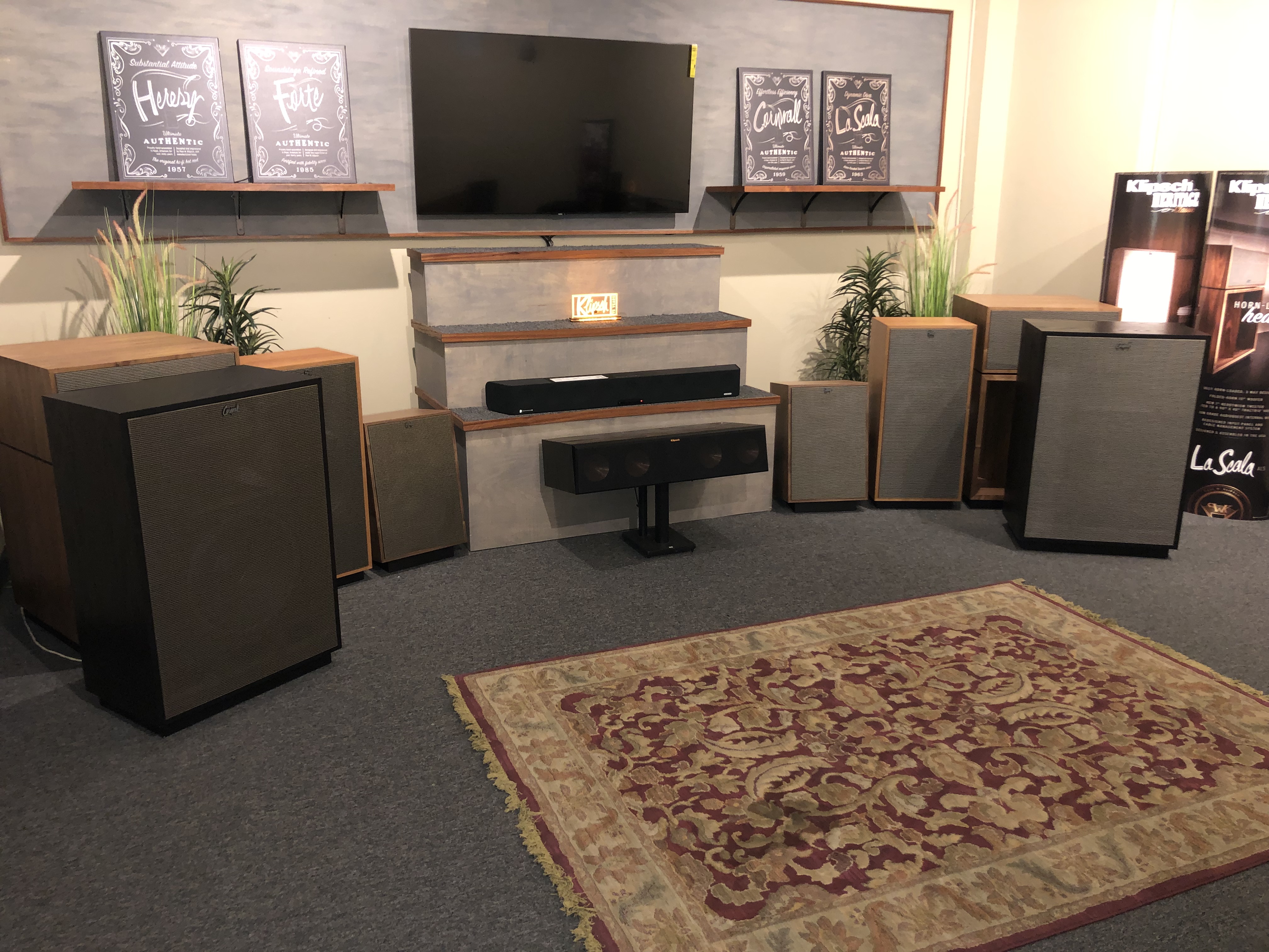 Initially introduced in 1959, the Cornwall speaker was designed to serve as a larger, full-range alternative to the Heresy when used as a center channel speaker between two widely spaced Klipschorns.