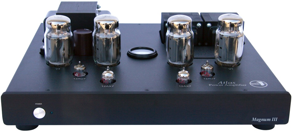 From a technical standpoint, the Atlas Magnum III represents the cutting edge of tube amplifier design. An oversized linear power supply stores tremendous energy for the dynamic headroom great performances demand. A new Ultralinear/Ttriode switch allows for both modes of operation; Ultralinear for slam, and pure triode for the ultimate in tube smoothness. The tube circuitry is first rate with short signal paths and low noise design. Finally, precision components are used to provide the transparency and air that are so critical to accurate musical reproduction.