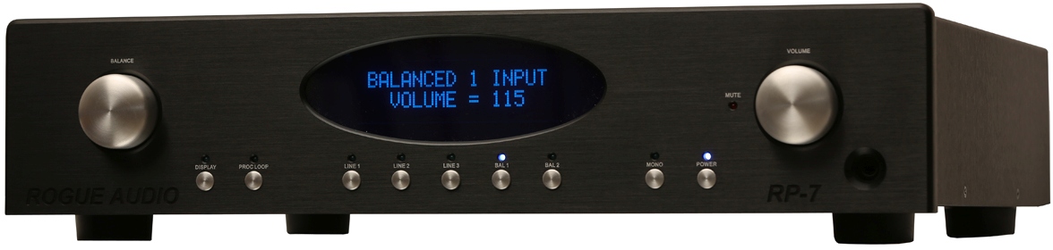 Beyond the excellent sound, the feature rich RP-7 provides all of the functions demanded of a luxury hi-end preamp. Included are a home theater bypass, processor loop, mono button, defeatable display, slow start circuitry, and a host of other features. A full function remote provides additional convenience. Two pairs of XLR balanced inputs and three pairs of RCA line level inputs allow for numerous source components while two pairs of XLR balanced outputs along with two pairs of RCA variable outputs facilitate a wide range of output connectivity. Also included is a high power tube based headphone amplifier capable of driving even the most difficult headphones.