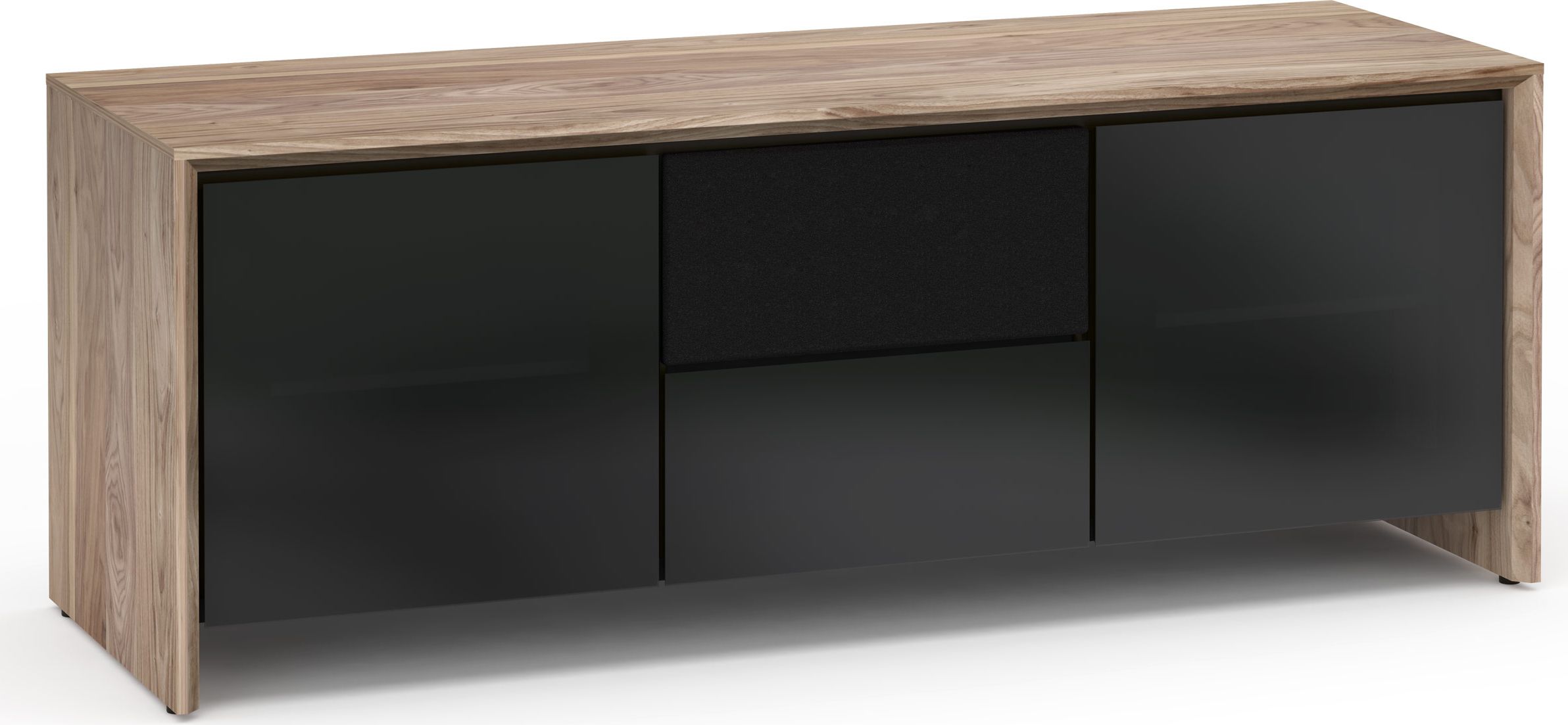 Salamander Designs® Barcelona 236 AV Cabinet-Natural Walnut/Black Glass with storage media drawer and soft-close door dampenersRead More