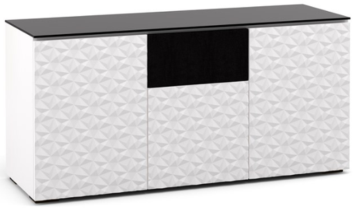 Finished in white, Milan is a sleek door design with a modern geometric three-dimensional, diamond pattern. Features infinitely adjustable, black interior shelves. Built-in ventilation louvers for better air flow keep equipment cool